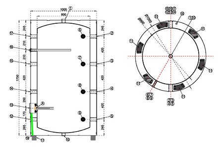 - A tartálytest teljes (külső) átmérője 1000 mm