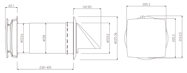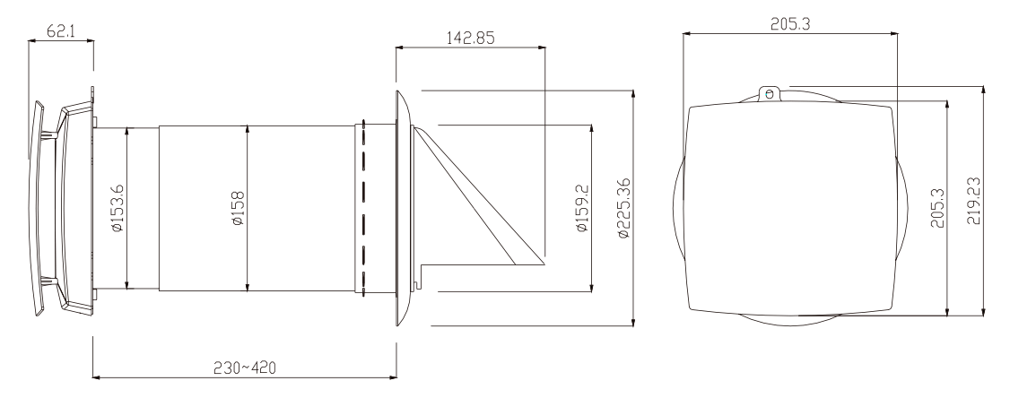 A megfordítható forgási irányú axiál ventilátor EC motorjának köszönhetően alacsony elektromos áram fogyasztás és halk működés jellemzi. A hosszú élettartamot a csapágyazott ventilátor tengely és a túlmelegedés elleni motor védelem is garantálja.