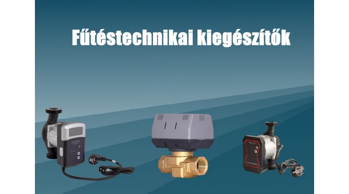 Fűtési rendszer kiegészítők elektromos kazán üzemeltetéshez. Keringető szivattyúk, mágneses iszapleválasztók, három járatú motoros váltószelepek, HMV hőmérséklet érzékelők.