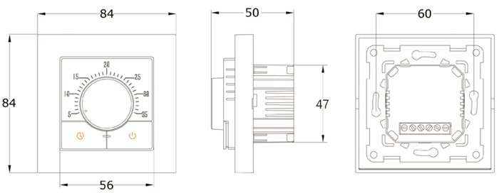 Manuális, nem programozható ON/OFF fali termosztát alapfelszereltségű padló hőmérséklet szenzorral szállítva. Irodák vagy lakások szoba hőmérsékletének precíz szabályzásához.