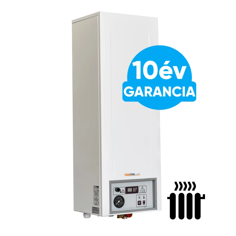 10 év garancia a vízteres kazántest hegesztési minőségére, víz szivárgására, és 3 év garancia a kazán többi részére